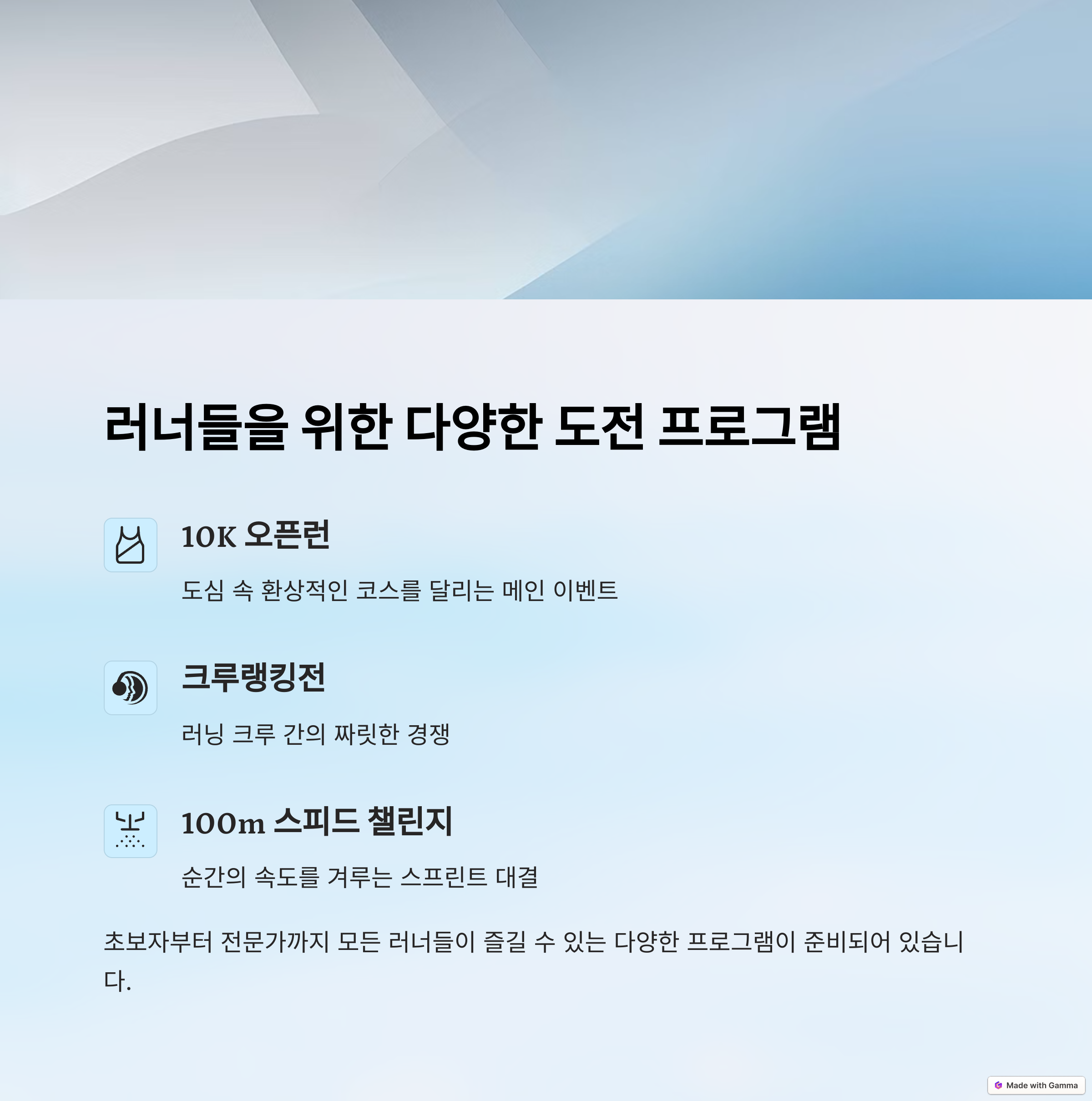 - 상위 기록자에게 러닝 기어 및 경품 제공