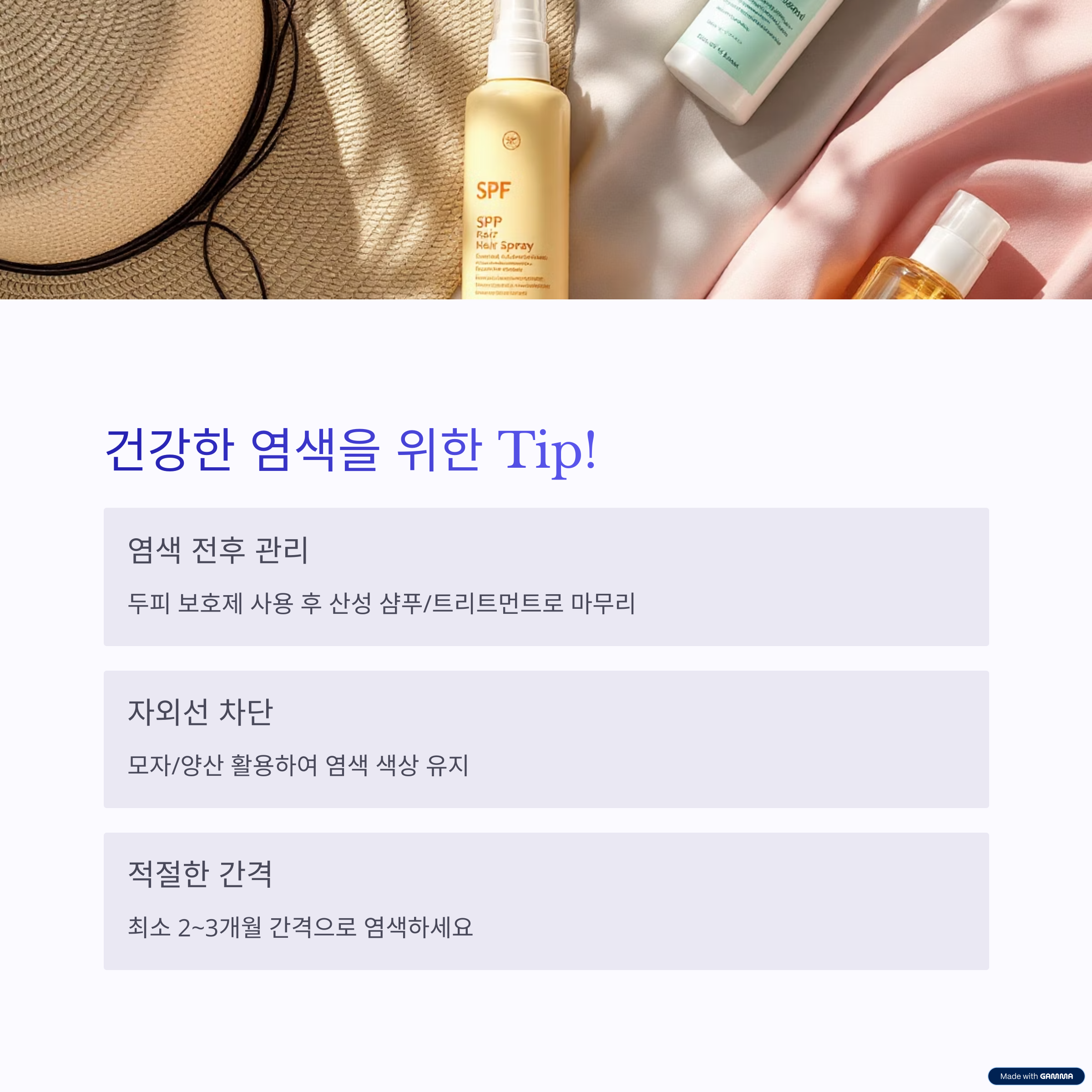 - 다양한 컬러와 긴 지속력, 빠른 시술을 원한다면 화학염색제가 유리하지만, 두피·모발 건강에 미치는 영향을 반드시 고려해야 합니다.