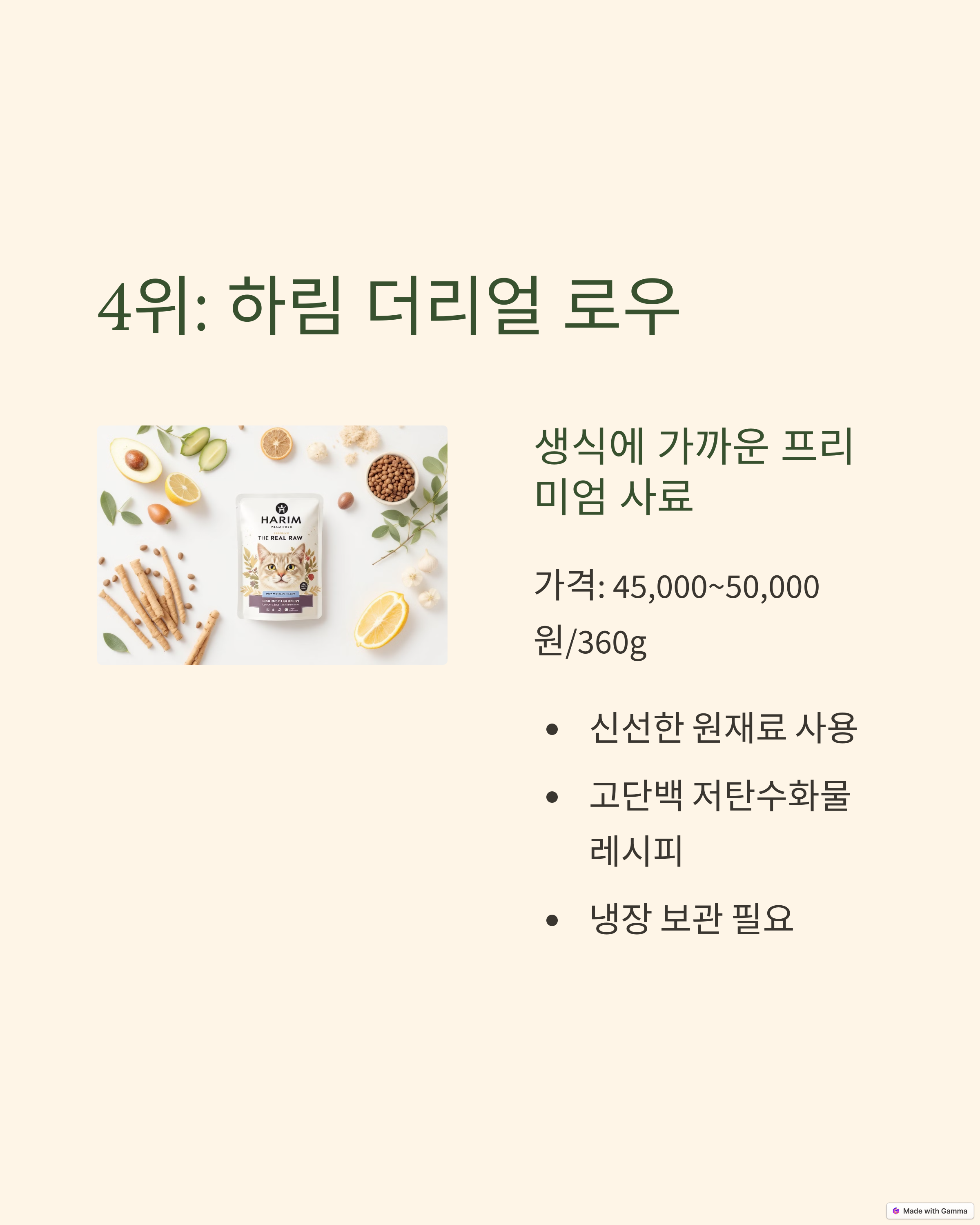 - 추천 대상: 곡물 알러지가 있거나 고단백 식단을 필요로 하는 고양이.