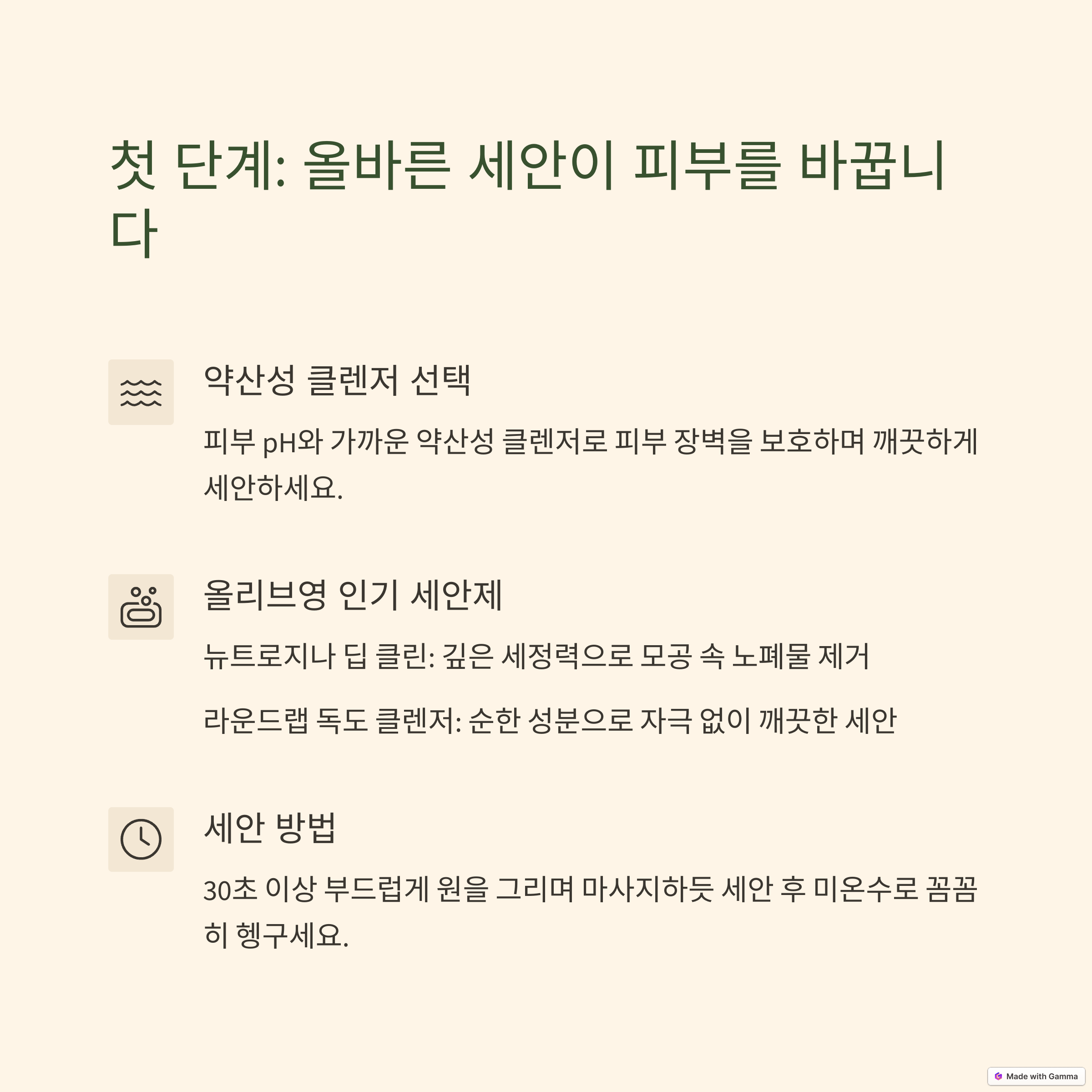 - 목적: 밤새 쌓인 피지와 노폐물을 제거하고 피부를 깨끗하게 정돈합니다.