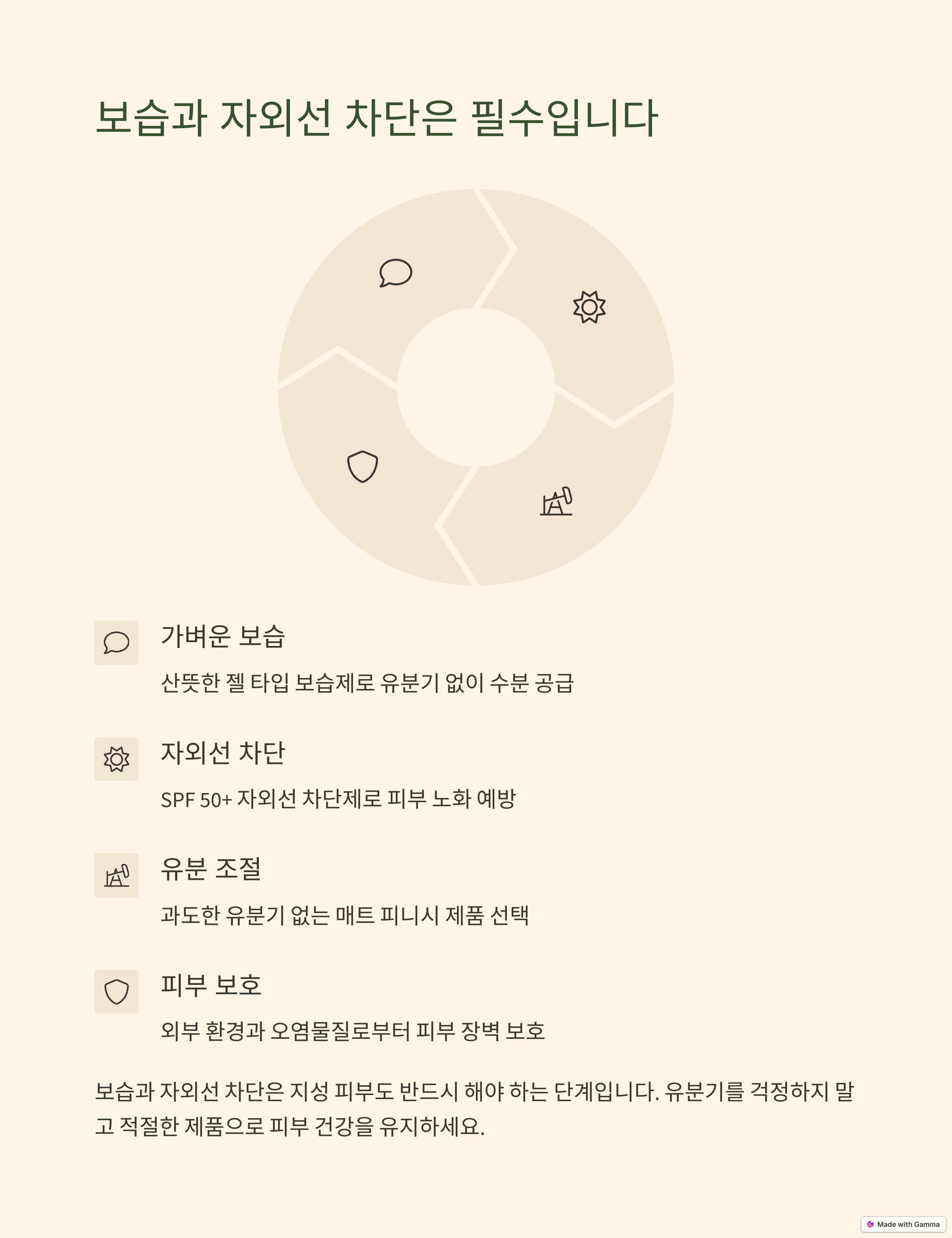 - “지성 피부는 피지 조절과 보습이 동시에 중요합니다. 과도한 유분 제거보다는 유수분 균형을 맞추는 것이 핵심입니다.” – 대한피부과학회 논문.
